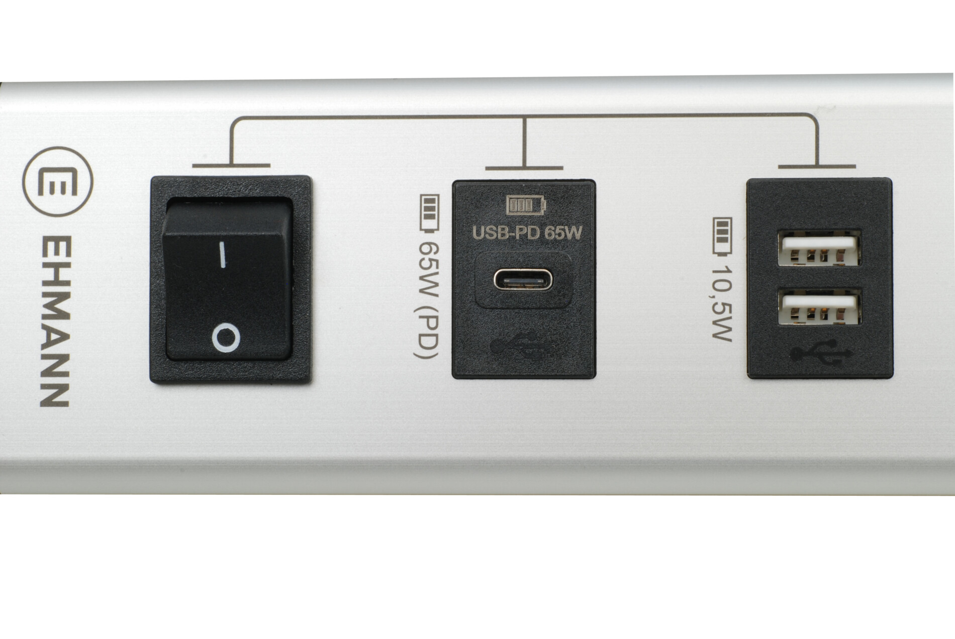 3 USB-A double-port with max. 2,1 A each with intelligent control of charging current
