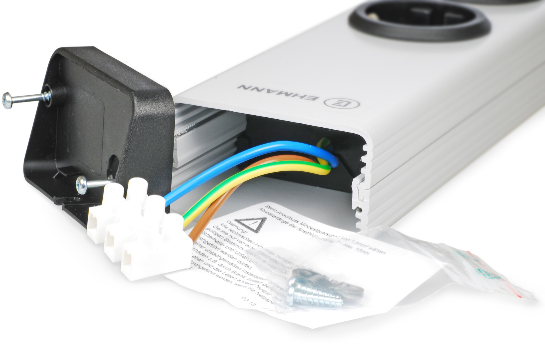 Universal socket strip 5-fold with hinged lid sockets and switch
