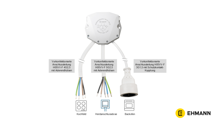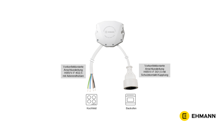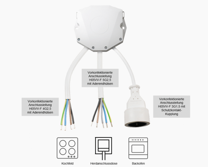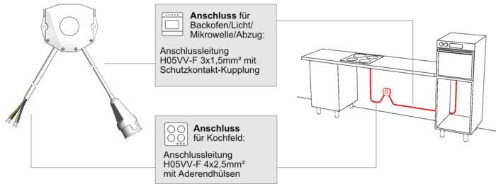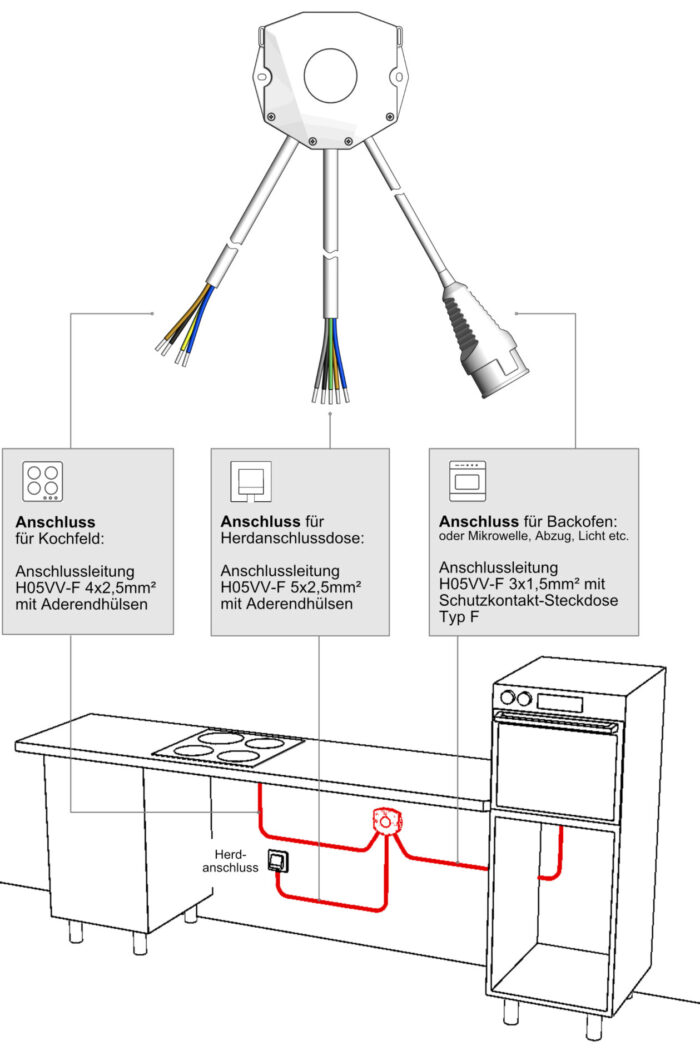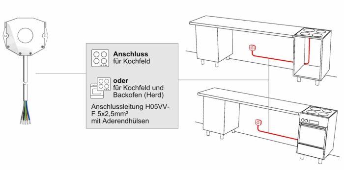 von Kochfeld und Backofen an die Herdanschlussdose