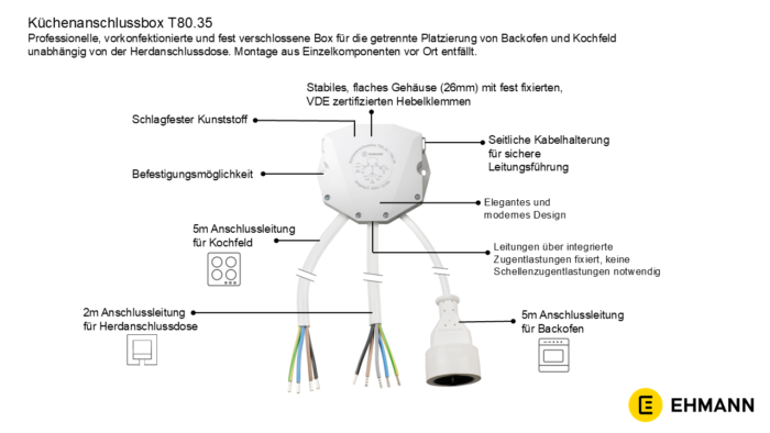 Küchenanschlussbox T80.35 | 1 x 2m + 2 x 5m