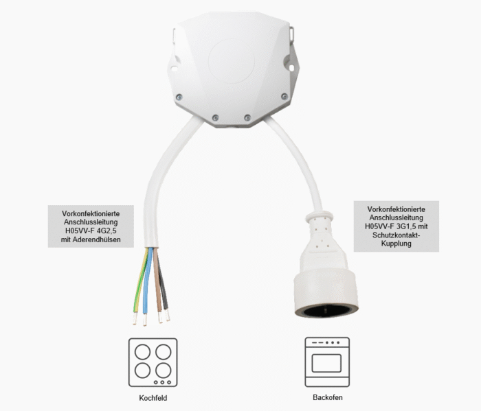 Vorkonfektionierte Herdanschlussdose