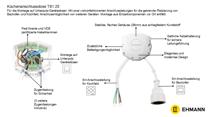 Küchenanschlussdose T81.25 | 2 x 5m