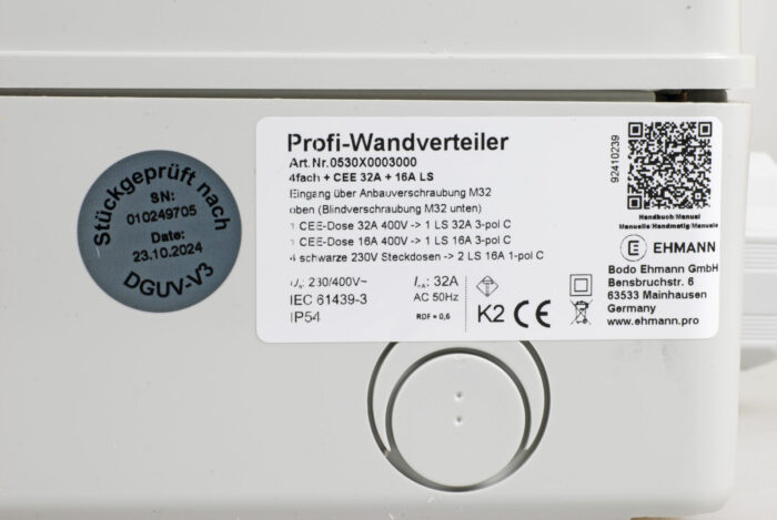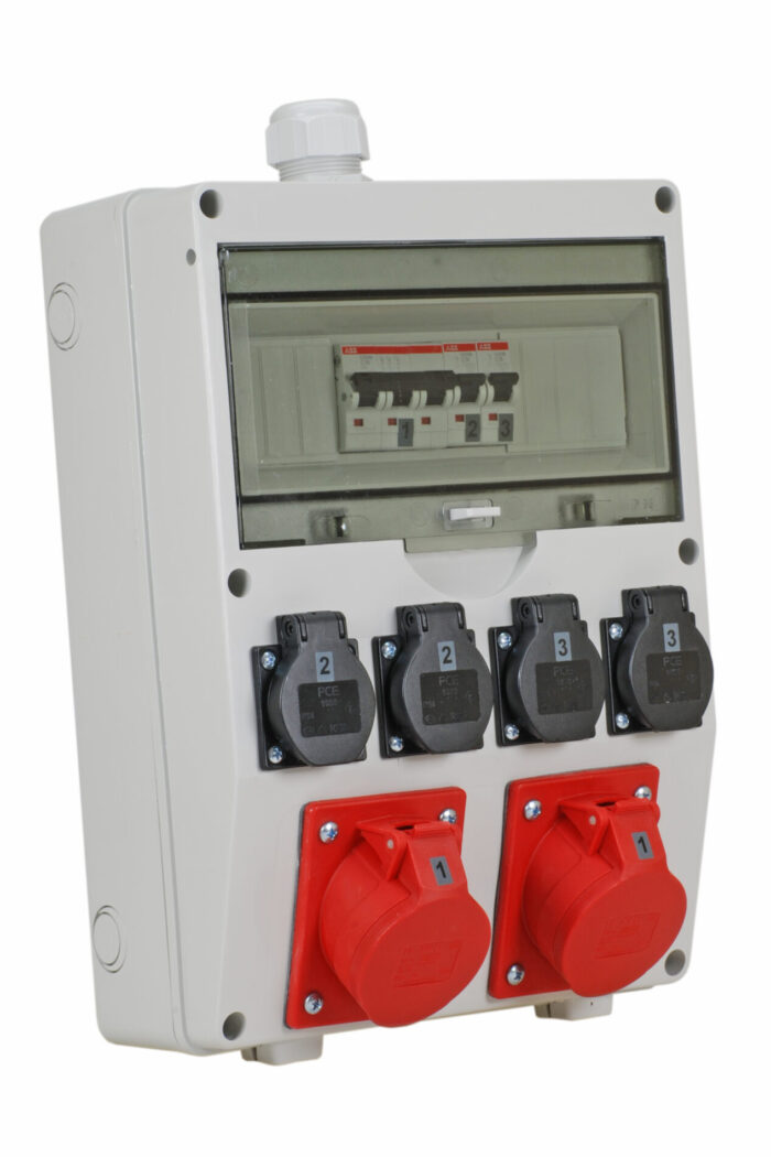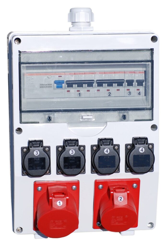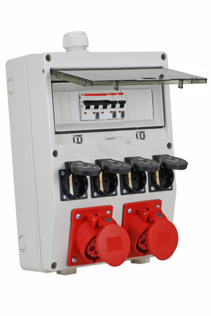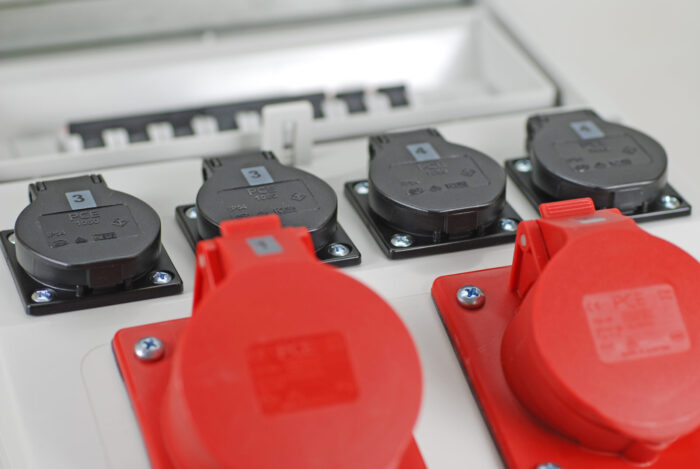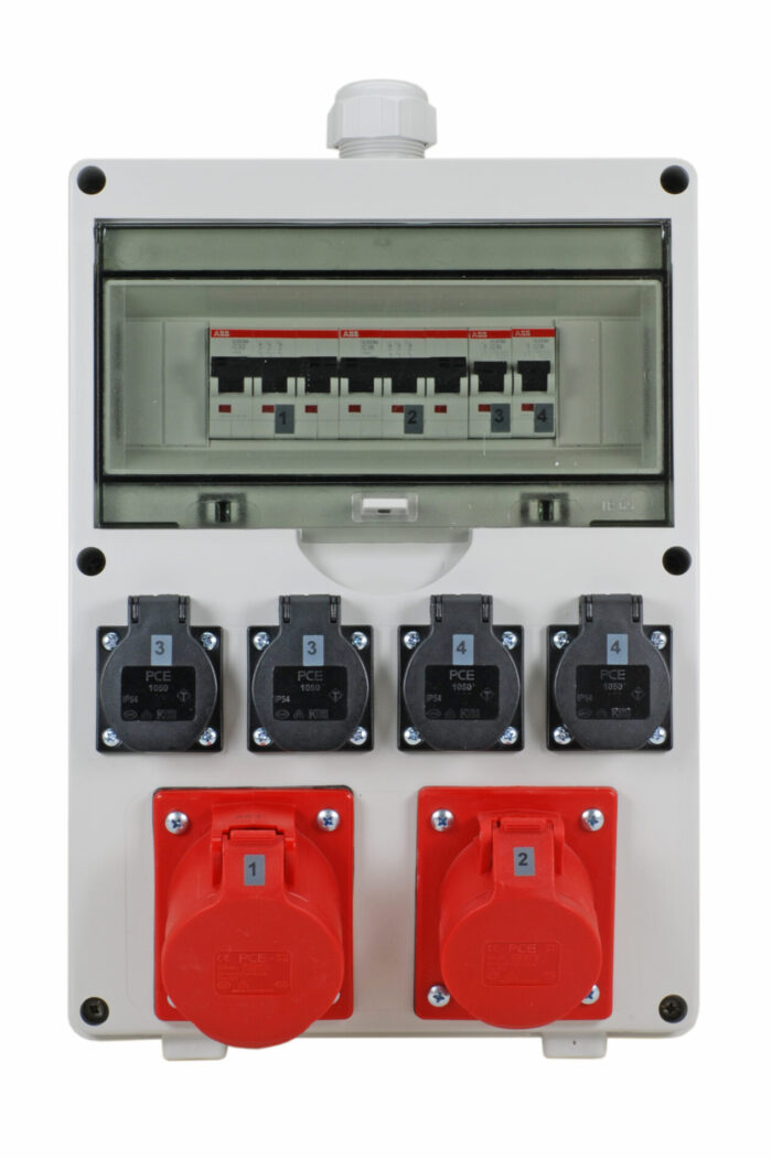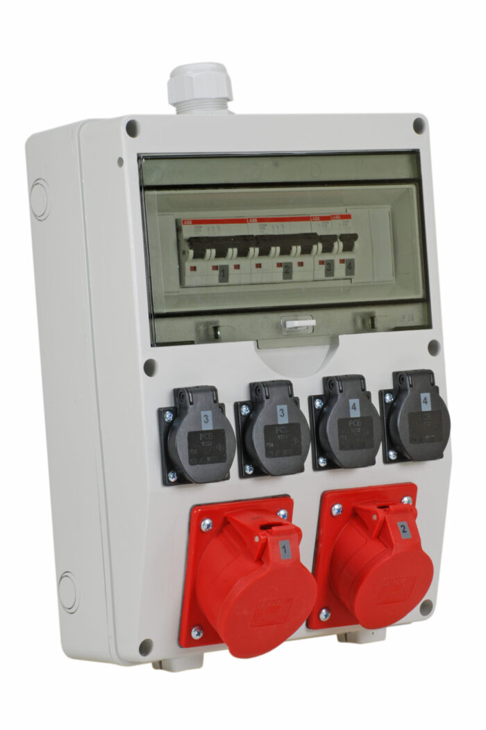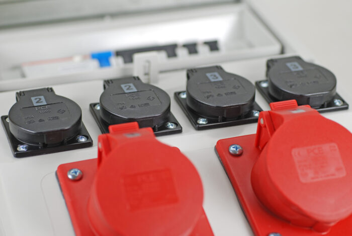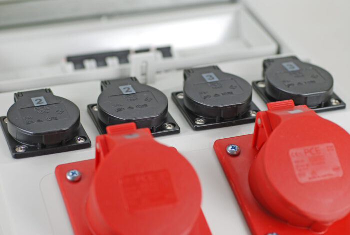 Ausstattung: Klappdeckelsteckdosen 4 x 16A/230V, 1 x 16A/400V, 1 x 32A/400V